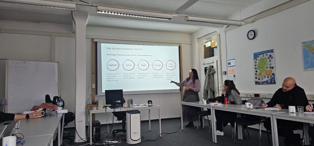 The afternoon focused on team building, forming international working groups composed of Albanian, Spanish, and German participants. These teams initiated Task 1, where they analyzed contextual challenges in their institutions and formulated joint problem statements to drive innovation in the days ahead.